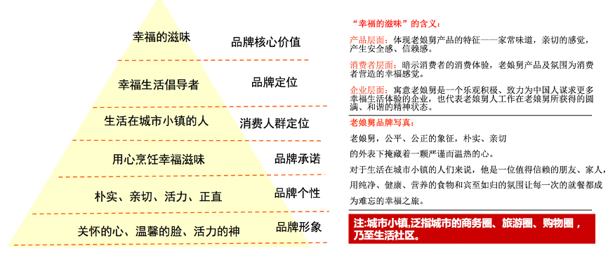 在品牌定位方面,建議企業建立以“幸福的滋味”這一普世的價值觀和追求為品牌核心價值的全新品牌形象與聯想。
