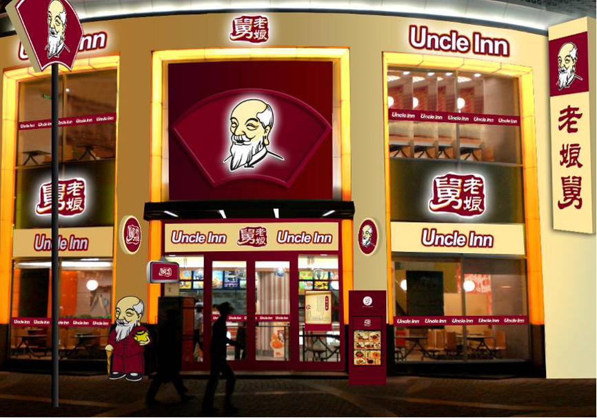 1)英文改進:將不符合英文規范的 old uncle改為“uncle inn”。