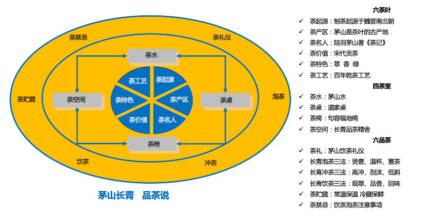 “茅山長青茶”以“茶葉消費”帶動新零售新消費,引來眾多的茶葉消費者,同時積極“筑巢引鳳”,以“茶游覽”增加茶葉消費者引流感,以“茶事表演”來提升消費者的參與感,以“茶工藝旅游”提升茶園、茶葉生產等價值感,以“茶設施”提升用戶的茶館、茶社等關聯消費,更以“茶研發”、“茶服務”等增強品牌的價值感。