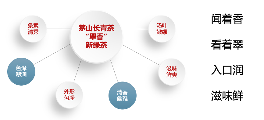 茅山長青茶,貴在搶占“翠香新綠茶”的品類定位,活化“茶葉新特性”,使茶味“聞著香”、“看著翠”、“入口潤”、“滋味鮮”新特性廣為人知,深入茶友心中,點亮“茶葉新品類”,創造“茶葉新特性”。