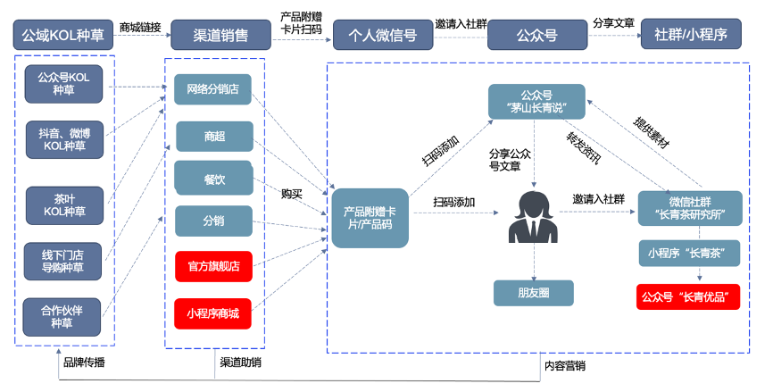 “茶葉”產業的經營,茅山長青茶的發展壯大,需要龐大的消費群體,需要源源不斷的用戶運營,更需要持續的“公域引流—私域轉化運營—公域擴展”,以此形成“公域*私域”的高效循環。