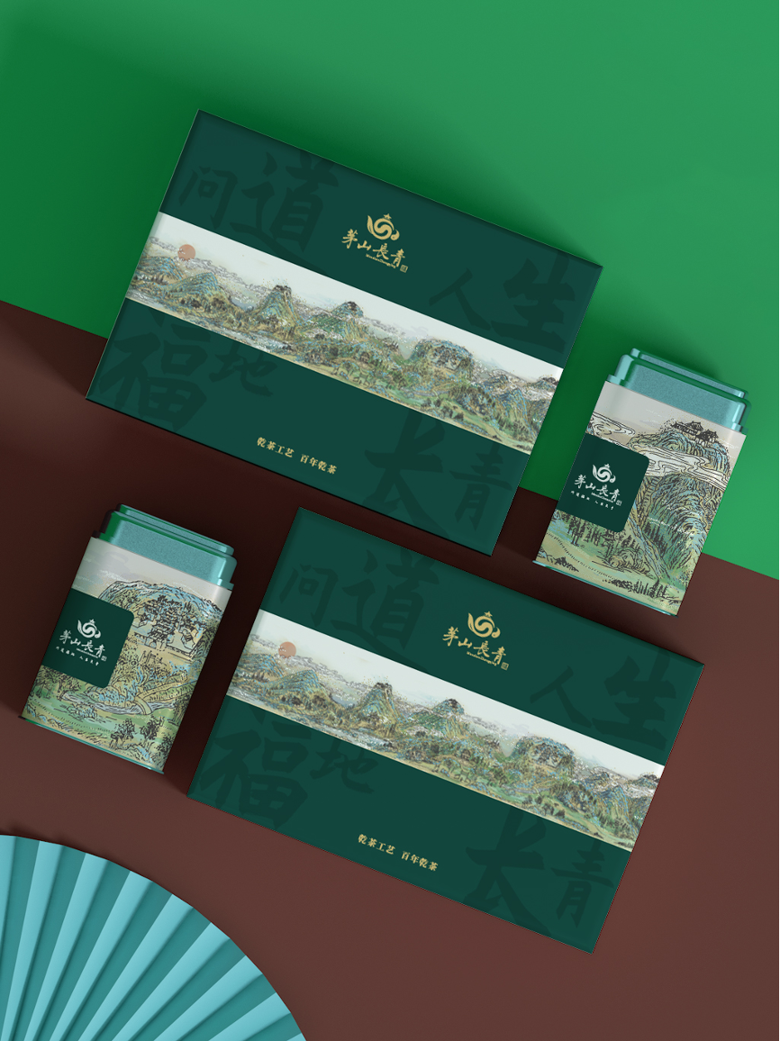 ——這個包裝設計的靈感來源于北宋時期著名畫家王希孟的千里江山圖,是一幅絹本設色長卷,這幅畫是一幅青綠山水畫, 《千里江山圖》是北宋王希孟創作的絹本設色畫,現收藏于北京故宮博物院。