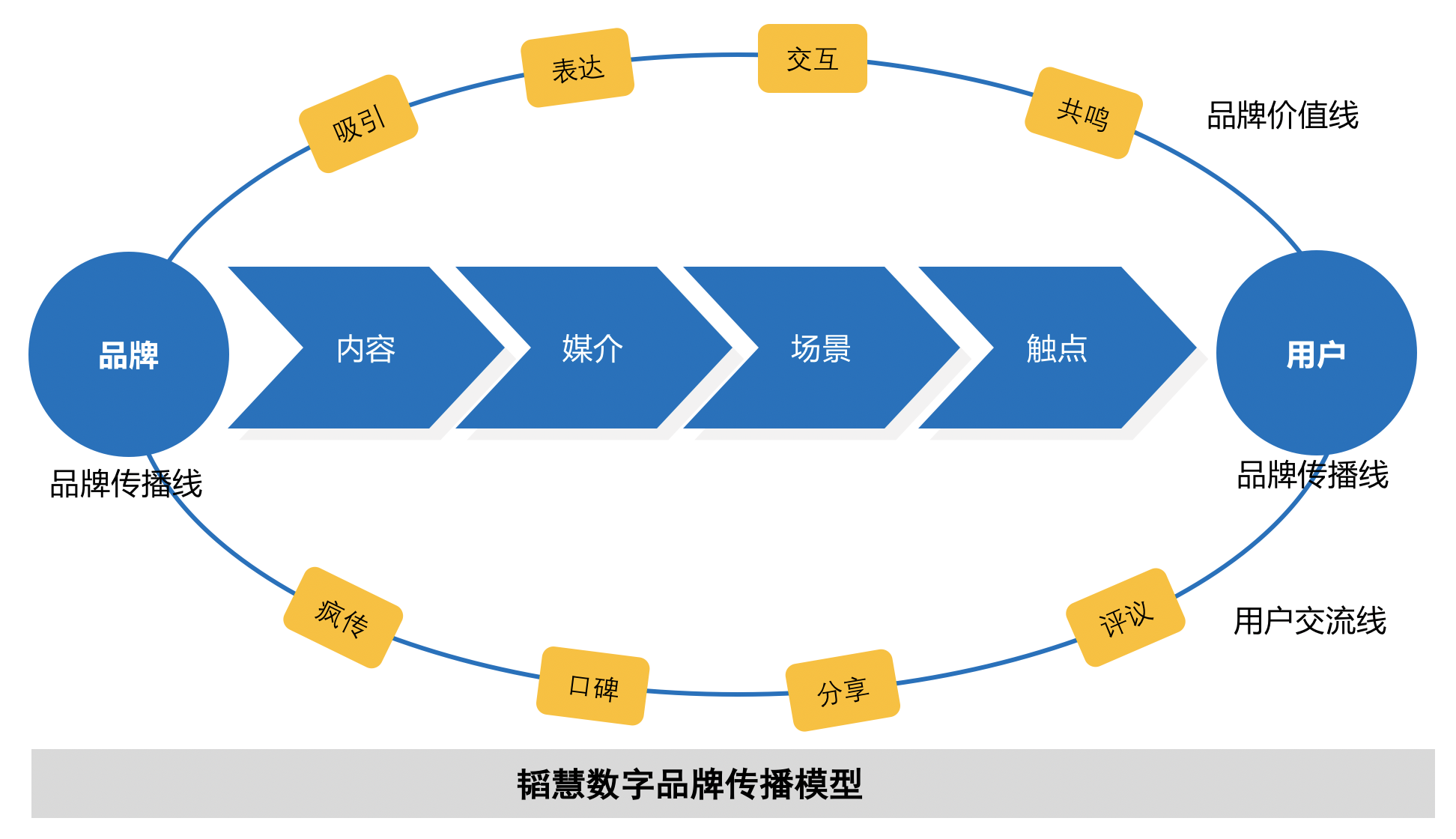 “品牌傳播線”推進:此部分由傳播內容、傳播媒介、傳播場景、傳播觸點等組成。