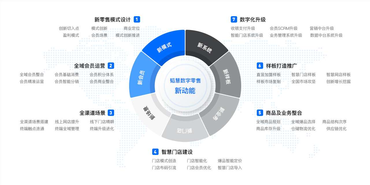 傳統企業在推進零售時,既面臨無人無人會的組織難題,又要面臨新零售技術難題、線上線下全渠道經營難題等,這些均需要企業統籌新零售業務規劃,擺脫新零售發展困境,強化會員全域運營、線上商城建設、線下渠道分銷、智能門店建設等,以此獲得長足發展。