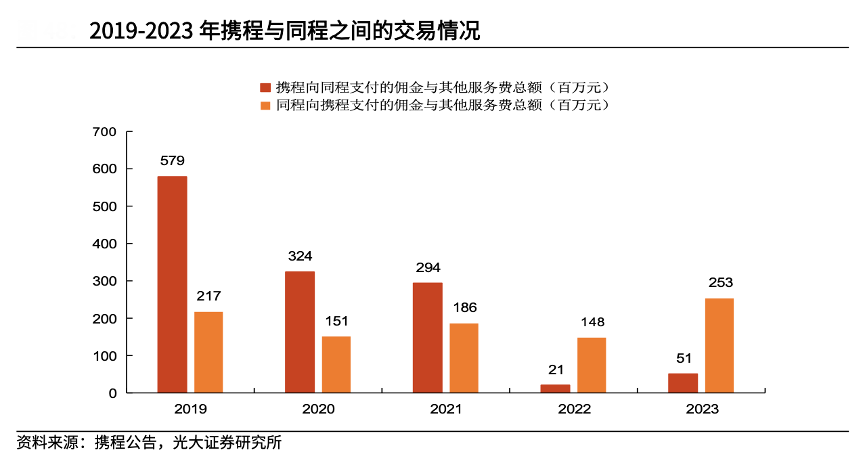 經典案例:根據攜程公告、光大證券研究所等綜合資訊表明,攜程具備豐富的酒店資源,截至 2019 年,攜程與超過 140 萬家酒店建立長期合作,提供國內外 5 萬個城市的酒店在線預訂,可為同程提供充足的酒店庫存。