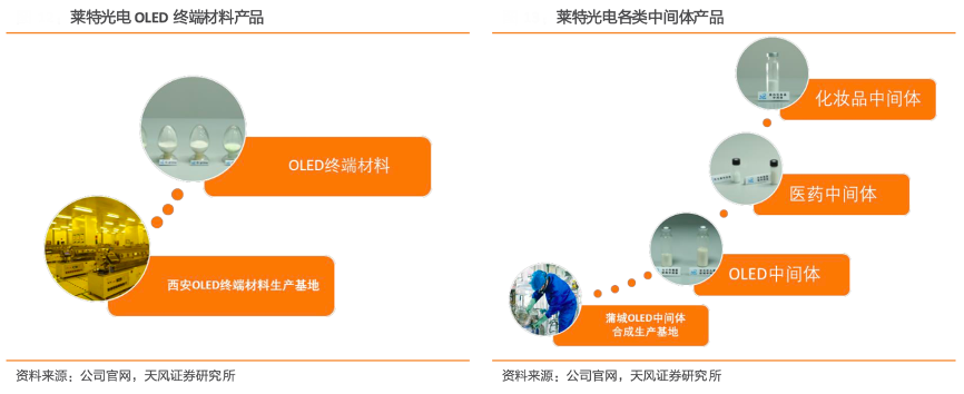 經典案例:根據公司官網、天風證券研究所等綜合資訊表明,陜西萊特光電材料股份有限公司主要從事 OLED 有機發光材料的研發、生產和銷售,是一家集產學研一體化的國家級高新技術企業,經過十四年發展,實現了 OLED 有機材料的設計、中間體合成、升華前材料制備、終端材料生產和器件制備與評測的全產業鏈運營,具備堅實的研發實力。