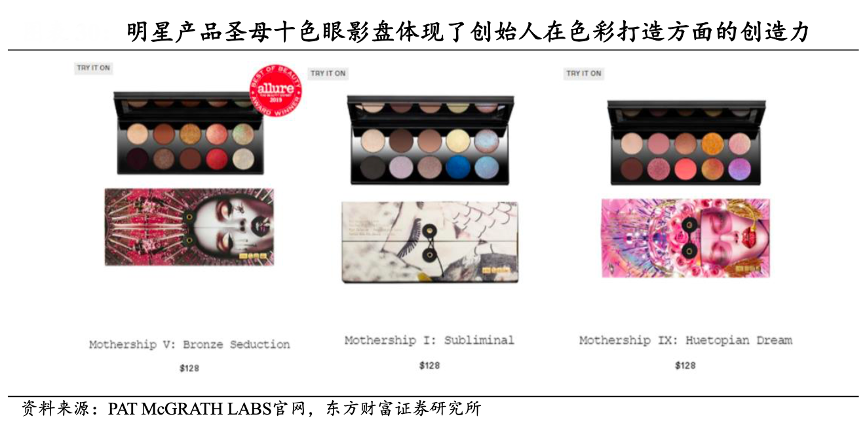 經典案例:根據PAT McGRATH LABS官網、東方財富證券研究所等綜合資訊表明,2015 年,Pat McGrath 正式創立了同名彩妝品牌 “PAT McGRATH LABS”,品牌明星產品“圣母十色眼影盤”的特色在于色彩鮮明、顯色度佳,能夠打造出極具特色的妝容,品牌亦因其特色受到了消費者青睞,2023 年 4 月以 69 億人 民幣的估值入選《2023·胡潤全球獨角獸榜》。