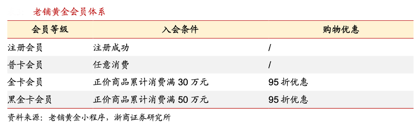 經典案例:根據老鋪黃金小程序、浙商證券研究所等綜合資訊表明,老鋪黃金公司設置了忠誠會員制度,注冊的消費者在購買產品至少一次后成為忠誠會員,公司為忠誠會員提供終身免費清 潔及基本維護服務,并為累計消費 30 萬元及以上金額的忠誠會員提供 5%的折扣。