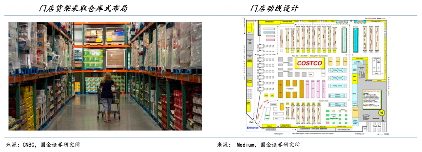 經(jīng)典案例:根據(jù)CNBC、Medium、國(guó)金證券研究所等綜合資訊表明,Costco公司深知消費(fèi)者來購(gòu)物的首要原因在于更優(yōu)質(zhì)實(shí)惠的商品,即被“極致性價(jià)比”所吸引, 因此在門店設(shè)計(jì)上能簡(jiǎn)則簡(jiǎn)、一切以效率為先。例如公司采取大包裝商品便于批量售賣、 倉(cāng)庫(kù)式貨架減少上貨的人力和時(shí)間成本,將節(jié)約下來的運(yùn)營(yíng)成本通過低毛利回饋給會(huì)員從 而鞏固自身的競(jìng)爭(zhēng)優(yōu)勢(shì)。