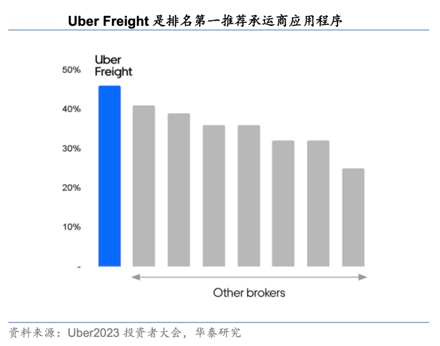 經(jīng)典案例:根據(jù)Uber2023投資者大會(huì)、華泰研究等綜合資訊表明,Uber Freight 平臺(tái)擁有超過 100 萬(wàn)司機(jī),相較 2019 年翻了一倍,越來越多的個(gè)體駕駛員及小型車隊(duì)愿意加入 Uber Freight 平臺(tái),利用其高效的匹配機(jī)制和穩(wěn)定的訂單流來提高收入和運(yùn)營(yíng)效率。