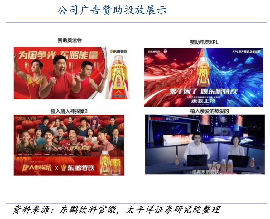 經典案例:根據食業家、太平洋證券研究院等綜合資訊表明,東鵬飲料公司除 了在市場端推廣以外,針對開車人群線下同步布局渠道專案項目,深入加油站、高速服務區、物流園、專業市場、駕校 等場景,從 2018 年開始至今公司已經打造 3+萬個物流應用場所,平均單點銷量提升300%。公司針對電競人群實施網吧渠道專案,通過終端形象建設、開卡消費等活動拉動消費,3年覆蓋近 3 萬家網吧,平均單點銷量提升200%。