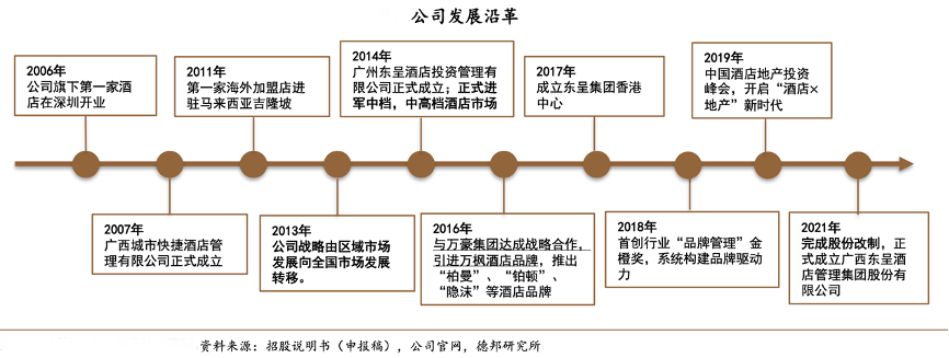 經典案例:根據招股說明書、公司官網、德邦研究所等綜合資訊表明,東呈酒店2007年成立、數字化驅動,全要素賦能旗下加盟酒店,為大眾出行者提供高性價比住宿體驗的創新型連鎖酒店特許經營企業。截至2021年,東呈旗下加盟酒店已覆蓋30余省、直轄市和自治區,深耕華南和華中地區,公司共有已開業加盟酒店2,162家(此外還有3家直營店),涵蓋經濟型、中檔、中高檔及高檔酒店,提供全流程特許經營服務。