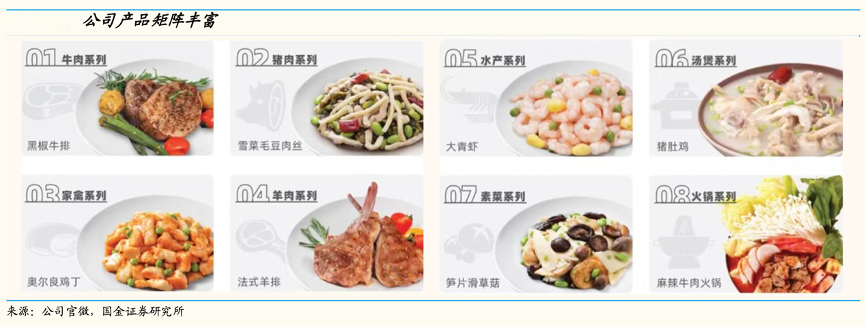 經(jīng)典案例:根據(jù)公司官微、國金證券研究所等綜合資訊表明,味知香公司目前產(chǎn)品覆蓋牛肉、家禽、魚蝦、蔬菜等半成品菜類 。其通過設(shè)立柔性化生產(chǎn)線,有效地針對不同菜品精準(zhǔn)配比食材及調(diào)料,現(xiàn)已推出 300 余種不同口味規(guī)格的產(chǎn)品,產(chǎn)品類別、SKU遠(yuǎn)超主要競爭對手。