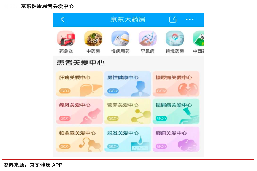 經(jīng)典案例:根據(jù)京東健康A(chǔ)PP、中信證券研究部等綜合資訊表明,針對慢病用戶,京東健康建立京東大藥房單病種關(guān)愛中心,提供專業(yè)的藥學(xué)服務(wù),提高人均用藥天數(shù)。在保健滋補領(lǐng)域,公司聚焦消費者精細化、專業(yè)化的營養(yǎng)攝入需求,打造多樣化的消費場景,如開展“超級品類日”活動,上線健康資訊欄目,開通“問營養(yǎng)師”服務(wù)入口等。