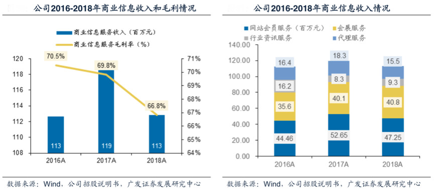 同時(shí)根據(jù)wind、公司招股說(shuō)明書、廣發(fā)證券發(fā)展研究中心等綜合資訊表明,國(guó)聯(lián)股份的商業(yè)信息收入當(dāng)中占比最大的主要是網(wǎng)站會(huì)員服務(wù),2018年的收入約為4725萬(wàn)元左右,會(huì)展服務(wù)收入收入增長(zhǎng)保持穩(wěn)定;行業(yè)資訊服務(wù)收入和代理服務(wù)下降顯著。