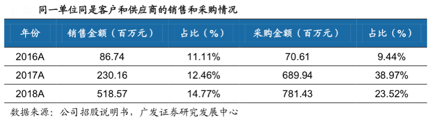 這類同一單位同是客戶和供應(yīng)商的銷售和采購(gòu)金額逐年遞增。2018年同一單位 同是客戶和供應(yīng)商的銷售額和采購(gòu)金額分別占銷售和采購(gòu)的比重分別為14.77%和 23.52%,銷售金額達(dá)到了5.2億元,采購(gòu)金額達(dá)到7.8億元;其中多多電商采取的供 應(yīng)鏈上下游衍生策略的銷售金額和采購(gòu)金額比重分別是84.28%和80.30%。
