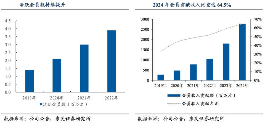 經(jīng)典案例:根據(jù)公司公告、東吳證券研究所等綜合資訊表明,達美樂會員體系加強優(yōu)質(zhì)客群綁定,有效提升用戶粘性及復購率:2024 年會員收入貢獻達 27.83 億元,同比增長 54%,收入占比達 64.5%。
