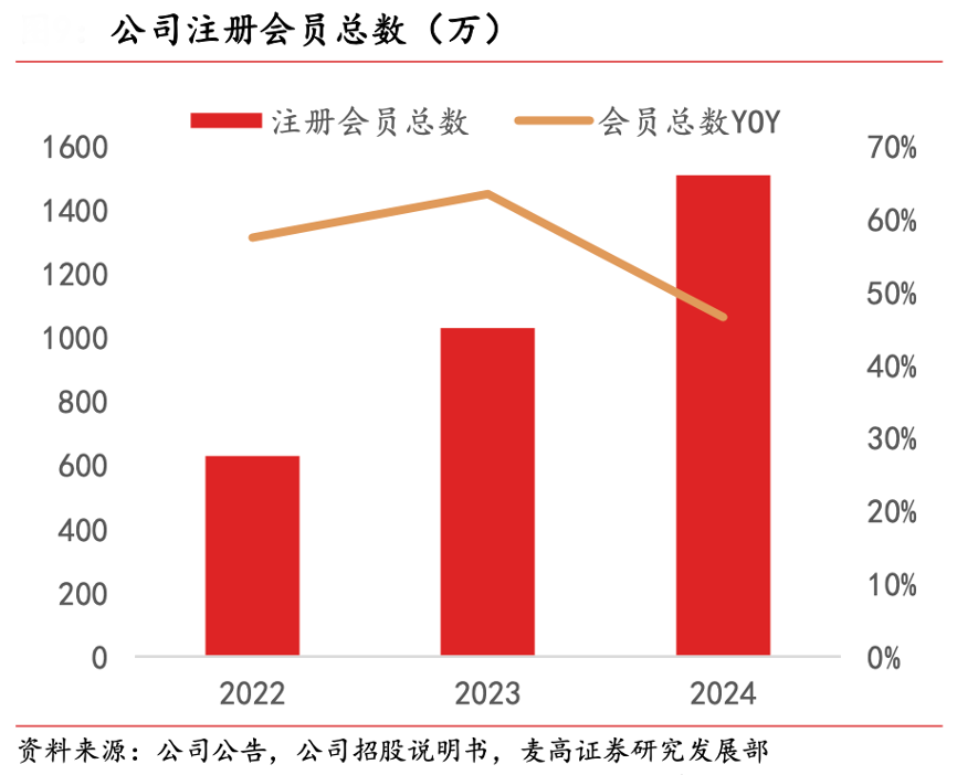 經典案例:根據公司公告、公司招股說明書、麥高證券研究發展部等綜合資訊表明,2024年毛戈平公司注冊會員總數達 1510 萬人,較 2023 年同比凈增 480 萬人,增幅達 46.6%。