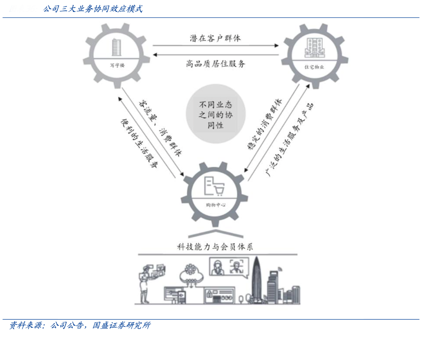 經典案例:根據公司公眾號、國盛證券研究所等綜合資訊表明,華潤萬象生活公司通過發起聯合營銷活動,在線上產品(面向購物中心 的“一點萬象”App,面向住宅用戶的“悅家”與面向寫字樓用戶的“Officeasy”)上 應用大數據分析,以及為用戶提供會員及獎勵計劃,進一步加強業態間的協同效應。
